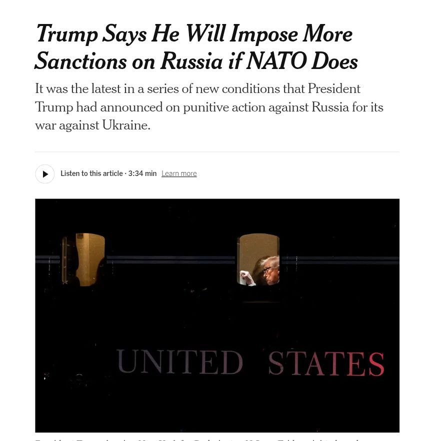 Ранее западные СМИ писали, что требования Трампа к странам НАТО о пошлинах против покупателей российской нефти могут осложнить давление на российского лидера Владимира Путина.