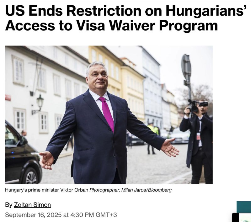 Министр внутренней безопасности США Кристи Ноэм объявила, что всем гражданам Венгрии с 30 сентября снова будет разрешено подавать заявления на получение двухлетней визы с правом многократного въезда.