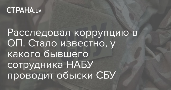 Служба безопасности Украины сегодня приходила с обысками к бывшему сотруднику НАБУ Тарасу Ликунову.