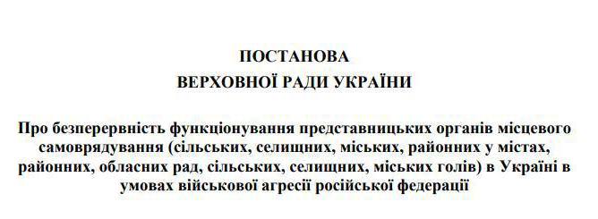 Проект постановления, который будет рассмотрен Радой в среду, должен эту коллизию разрешить и продлить полномочия местных органов власти на время действия военного положения.