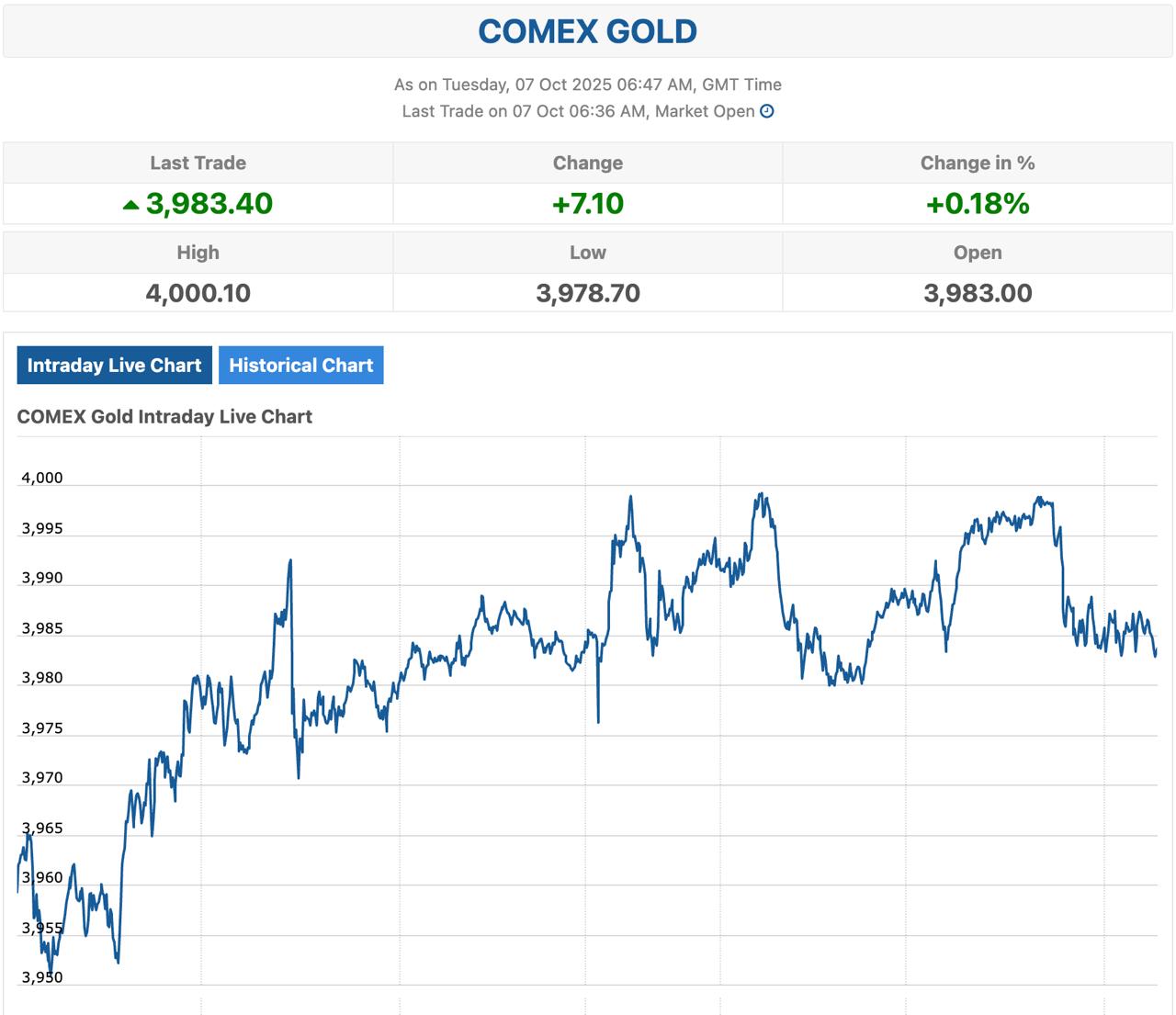 На Нью-Йоркской товарной бирже ночью цены достигли пика, а к утру вторника откатились примерно до 3 980 долларов за унцию.