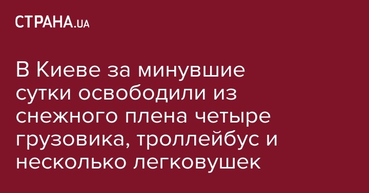 В Киеве за минувшие сутки из снежных заносов освободили девять транспортных средств, среди которых четыре грузовика и троллейбус. Об этом сообщает пресс-служба ГСЧС в Киевской области.