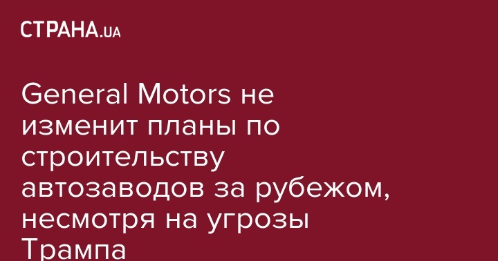 Автомобильная компания General Motors не откажется от планов по размещению производств за рубежом, несмотря на критику избранного президента США Дональда Трампа. Об этом заявила генеральный директор концерна Мэри Барра, передает Associated Press.