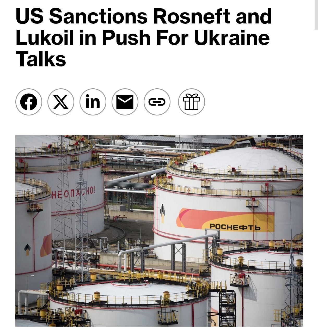 Все активы и имущественные интересы "Роснефти" и "Лукойла", находящиеся в США или под контролем американских лиц, блокируются. Любые операции с участием этих компаний запрещены для граждан и юридических лиц США, а также для всех транзакций, проходящих через американскую финансовую систему (отметим, что один из крупнейших покупателей российской нефти - Индия - платит за топливо в юанях).