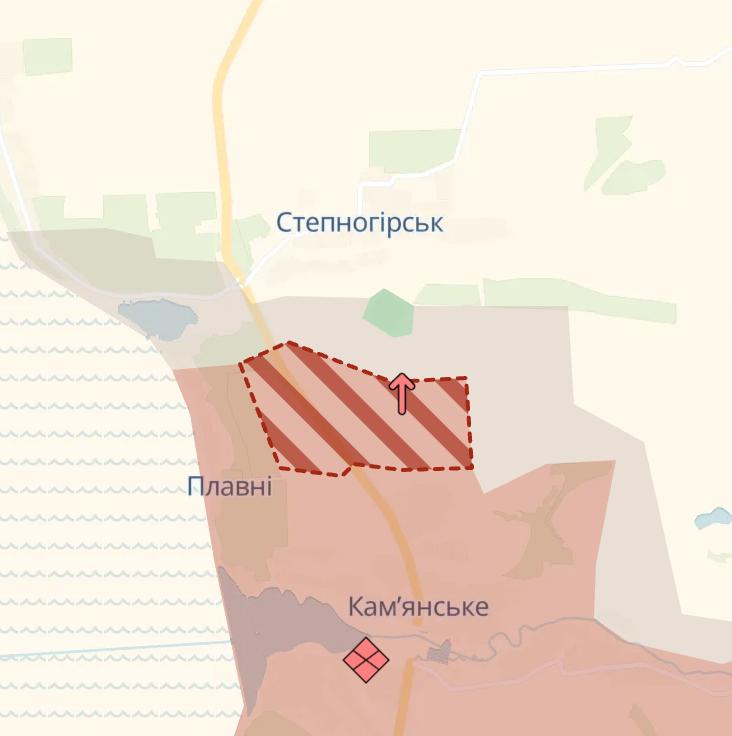 09:50 Армия РФ снова продвинулась на запорожском направлении возле Каменского, сообщает Deep State.