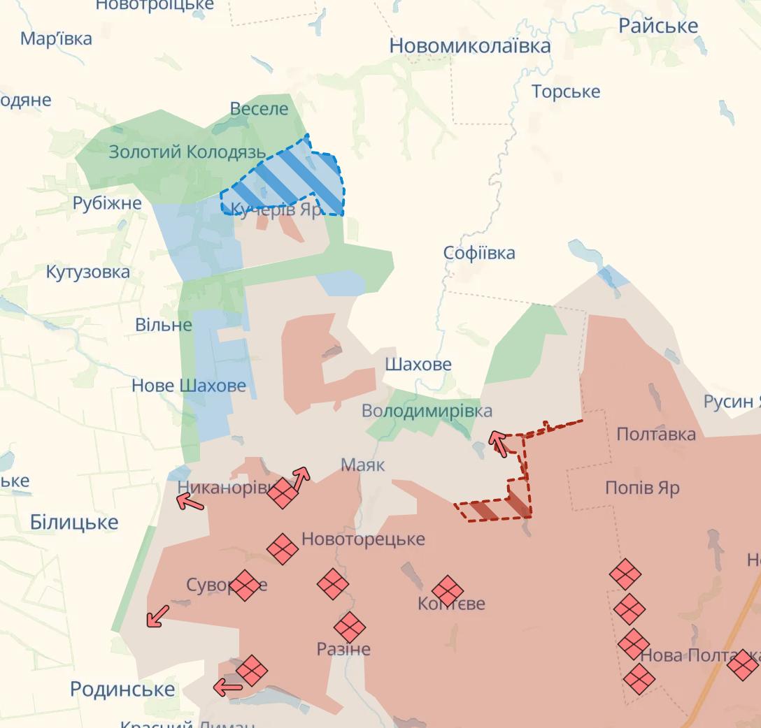 В свою очередь ВСУ продвинулись на Добропольском выступе, а россияне южнее, около Владимировки.
