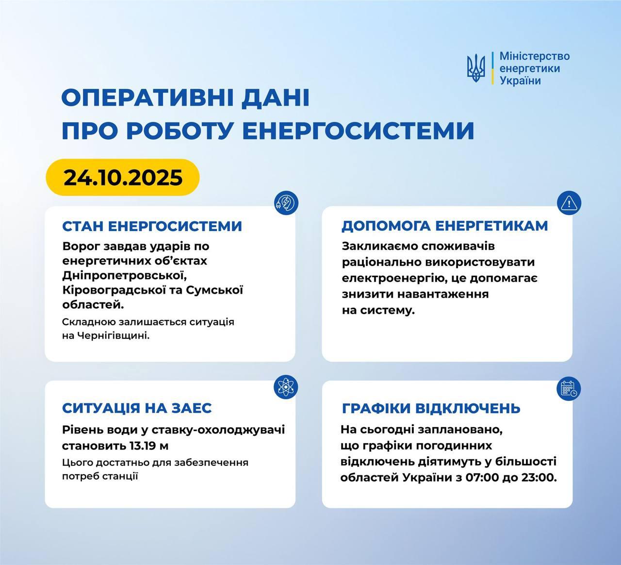 10:48 Ночью были нанесены удары по объектам энергетики в Днепропетровской, Кировоградской и Сумской областях, сообщает Минэнерго.
