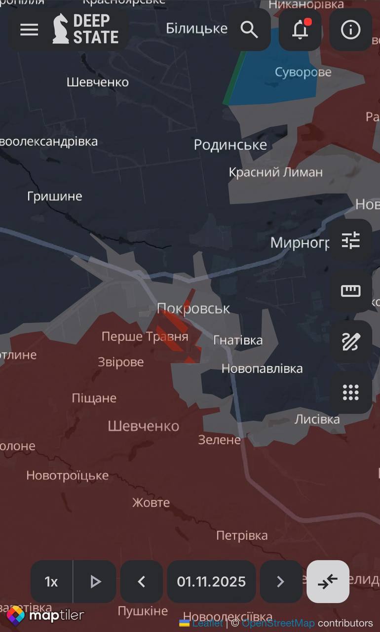 По предоставленной информации, российские войска продвинулись в Покровске (зона контроля дошла уже до центра города).