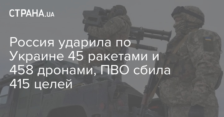 Россия ударила по Украине 45 ракетами и 458 дронами, ПВО сбила 415 целей