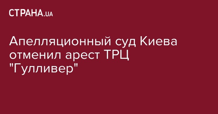 Апелляционный суд Киева отменил решение об аресте торгово-развлекательного центра "Гулливер", признав выводы Шевченковского районного суда о связи с банком-банкротом "Михайловский" безосновательными. Об этом сообщают "Украинские Новости".