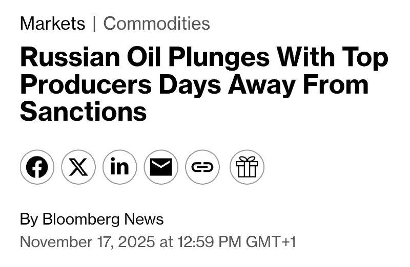 На прошлой неделе стоимость российской нефти марки Urals упала до самого низкого уровня за последние два с половиной года. Причем падение цены произошло за несколько дней до вступления в силу американских санкций в отношении двух крупнейших российских нефтяных компаний "Роснефть" и "Лукойл". Ограничения начнут действовать 21 ноября.