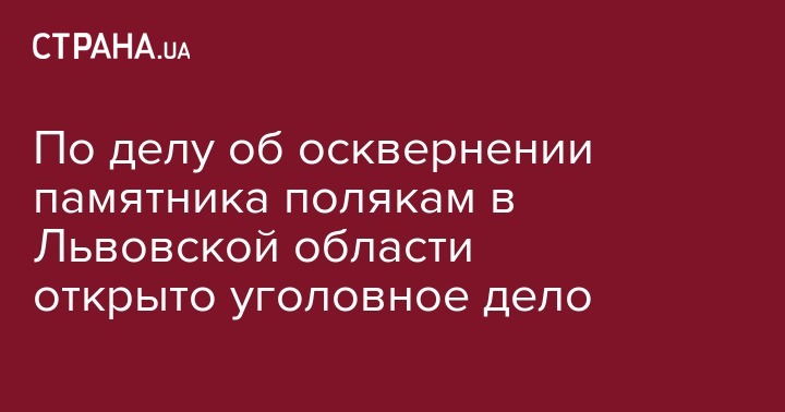 Как сообщала "Страна",  в ночь на 10 января неизвестные повредили памятный знак в с. Гута-Пеняцкая Львовской области, установленный в честь поляков, погибших от рук гитлеровских войск в 1944 году - памятник обрисовали сине-желтыми и красно-черными цветами, а также нацистской символикой.