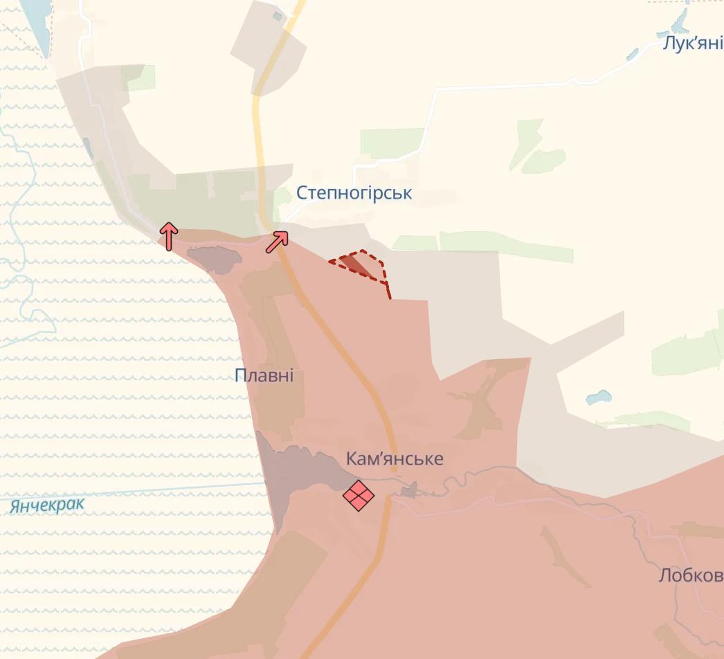 Также у РФ продвижение в районе Владимировки, что севернее Мирнограда, и в Степногорске, что на запорожском направлении.