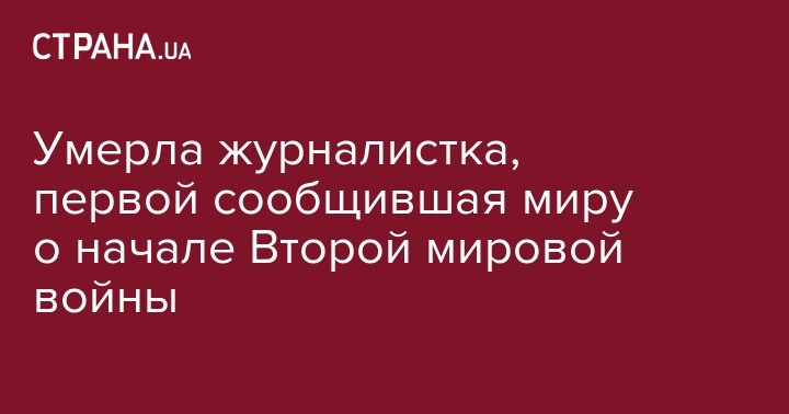 Умерла журналистка, первой сообщившая миру о начале Второй мировой войны