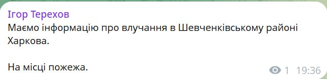 10.51 О прилетах в пригороде Харькова сообщает мэр Терехов.