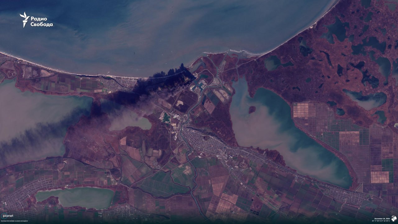 21:21 Спутниковые снимки пожара на территории порта Темрюк в Краснодарском крае РФ.