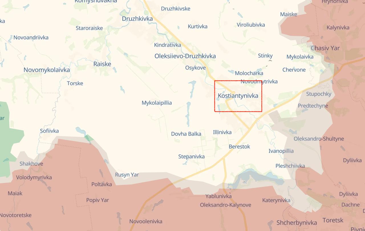 По данным эксперта, российские войска уже фиксируются в самой Константиновке от улицы Островского до СТО "Сити-Драйв", а также на южной окраине Иванополья.