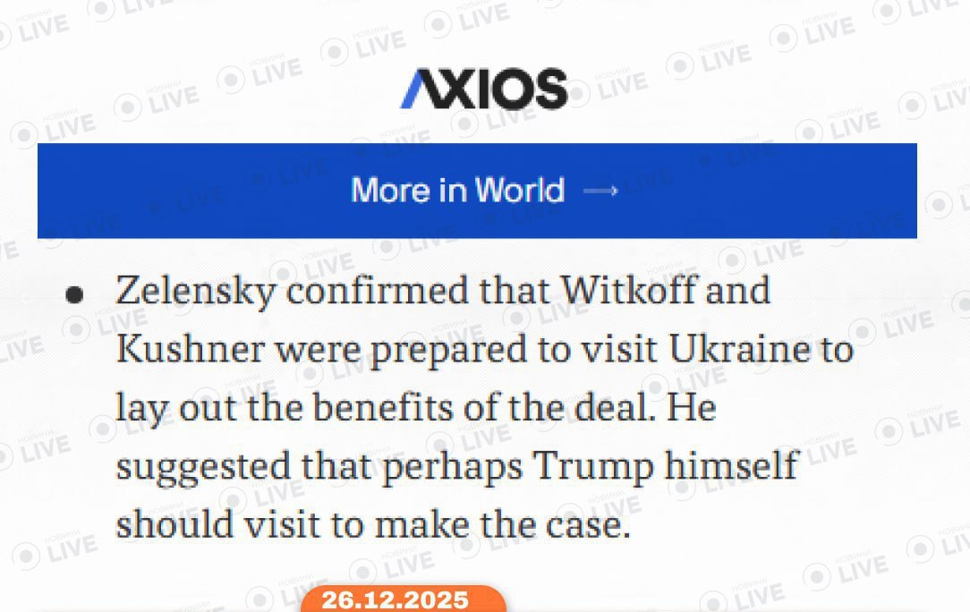 По словам главы государства, спецпредставители президента США Стивен Уиткофф и Джаред Кушнер готовы посетить Украину, чтобы изложить преимущества сделки.