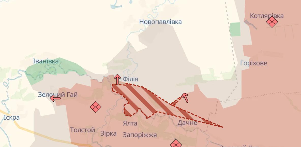 10.40 Армия РФ продвинулась в Гуляйполе и Мирнограде, а также их окрестностях, сообщает Deep State. Кроме того, у РФ продвижение в Днепропетровской области около Филии.