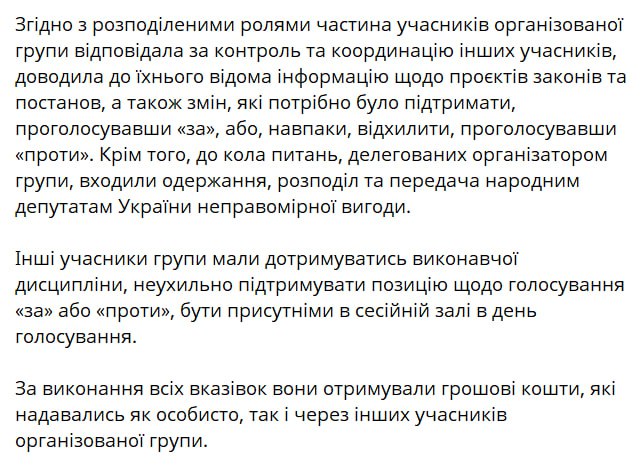Распределение взяток, как правило, осуществлялось каждый четверг в начале следующего месяца по итогам выполнения нардепами указаний организатора, добавляет САП.