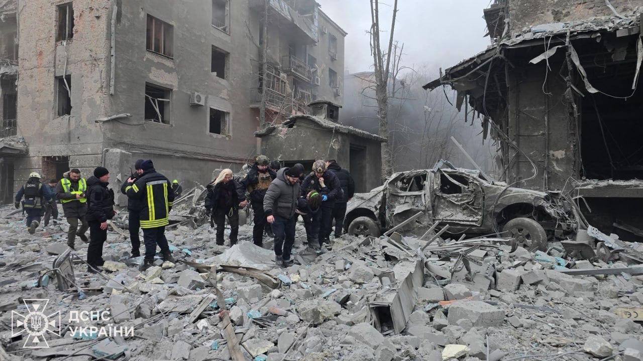 15:20 Кадры из Харькова после прилета по жилому дому. Предварительно, его атаковали две ракеты, сообщает Зеленский.
