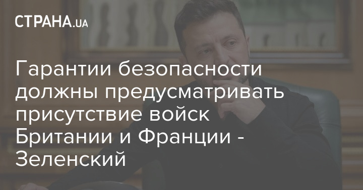 Президент Украины Владимир Зеленский заявил, что гарантии безопасности должны предусматривать физическое присутствие как минимум британских и французских войск на территории Украины.