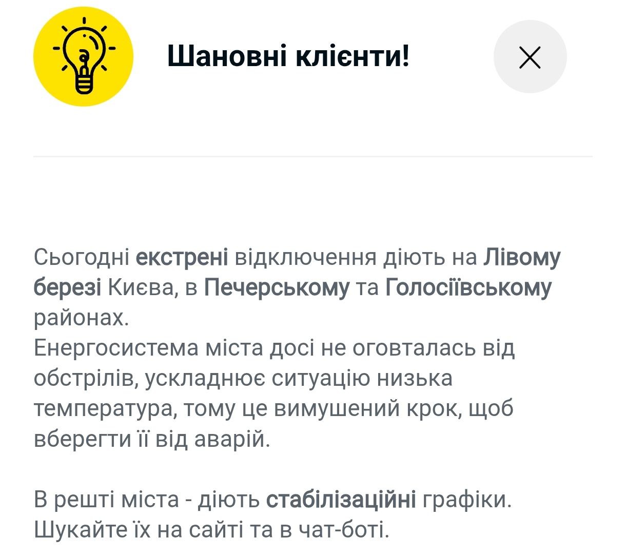 08:10 В Киеве с утра продолжаются экстренные отключения света, сообщает ДТЭК.