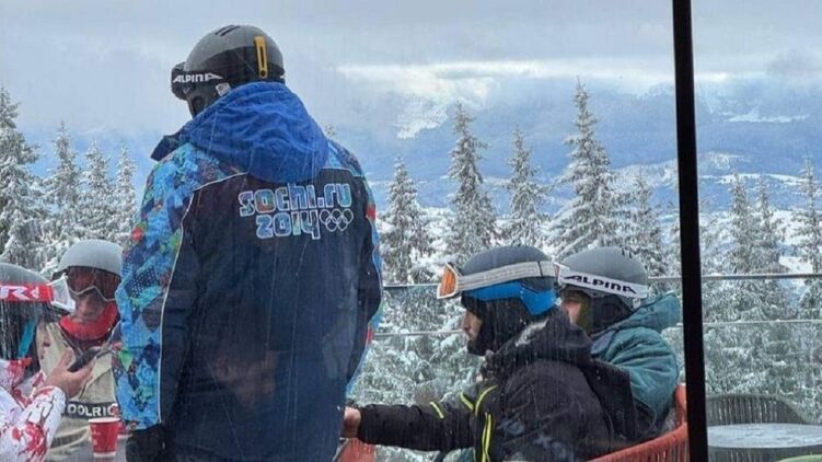 На горнолыжном курорте в Буковеле Ивано-Франковской области отдыхающие сняли мужчину, одетого в куртку с логотипом Зимней олимпиады 12-летней давности и надписью "Сочи-2014".