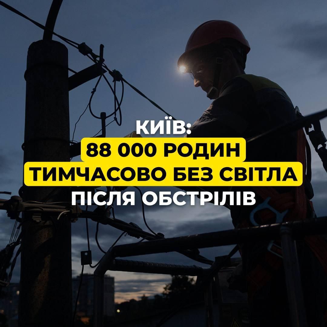 9:47 В Киеве сейчас почти 90 тысяч домохозяйств без света, сообщает ДТЭК.