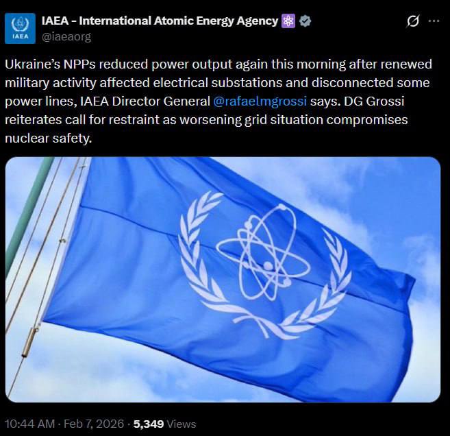 Об этом заявил глава МАГАТЭ Гросси. По его словам, этим утром после новых атак ситуация в энергетике ухудшилась. Он призвал к сдержанности в ударах по энергосистеме, так как повреждения энергосетей угрожают ядерной безопасности.