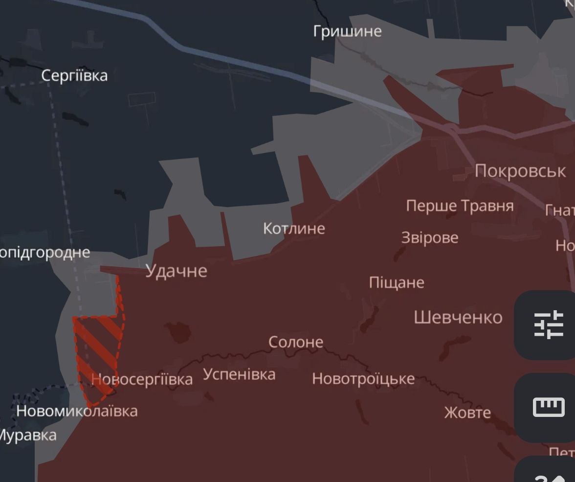 18:06 Российские войска продвинулись к западу от Покровска, в районе Удачного и Новониколаевки.