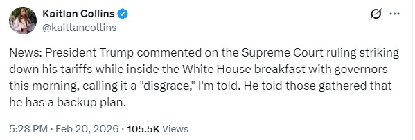 Как написала в X корреспондент компании CNN Кейтлан Коллинз, об этом он сказал на встрече с губернаторами штатов, которая сейчас проходит в Белом доме.