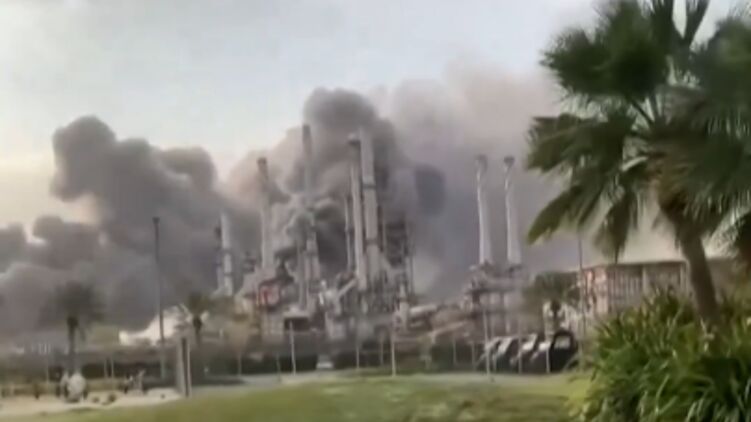 Появились кадры пожара на нефтеперерабатывающем заводе компании Aramco в Саудовской Аравии, по которому был нанесён удар.