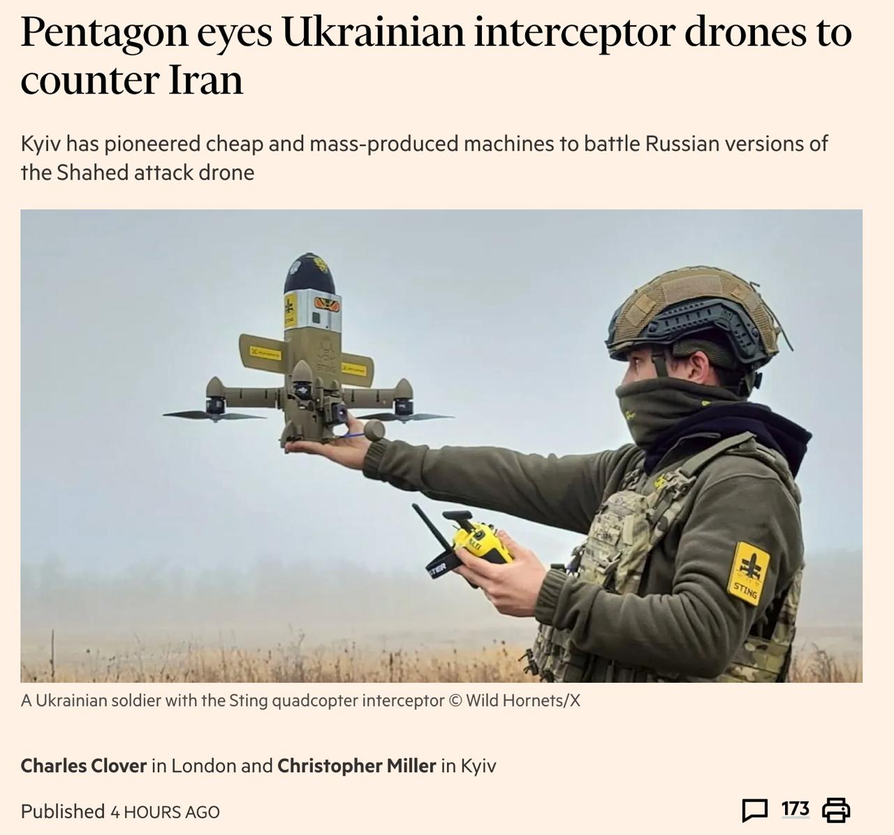 "Интерес к украинским перехватчикам дронов, способным уничтожать "Шахеды" при очень низкой стоимости, резко возрос", - сказал представитель украинской отрасли, но добавил, что любые продажи украинских систем должны координироваться с Киевом.