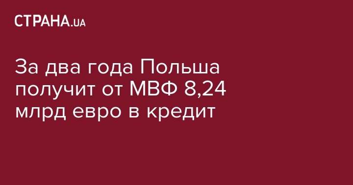 Руководство Международного валютного фонда приняло решение о предоставлении Польше нового кредита сроком на общую сумму 8,24 млрд евро сроком на два года. Об этом говорится в официальном сообщении пресс-службы МВФ, передает Reuters.