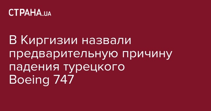 В Министерстве транспорта и дорог Киргизии озвучили предварительную причину крушения турецкого Boeing 747 под Бишкеком. Об этом говорится на официальном сайте ведомства.