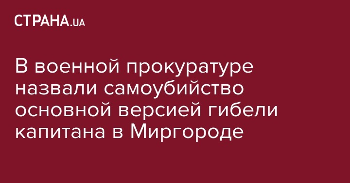 Наиболее вероятна версия гибели капитана контрактной службы на территории воинской части в Полтавской области является самоубийство. Об этом сообщает пресс-служба военной прокуратуры Центрального региона.