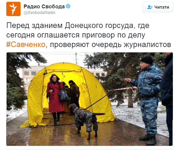 Журналистов перед допуском в здание суда пропускали через металлоискатели, а потом их обнюхивали полицейские ищейки.