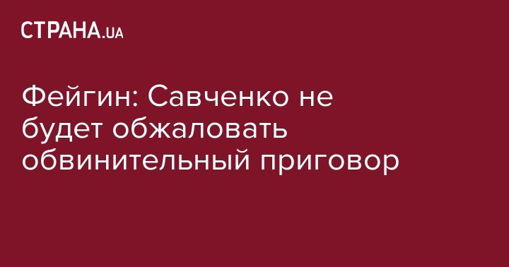 Фейгин: Савченко не будет обжаловать обвинительный приговор