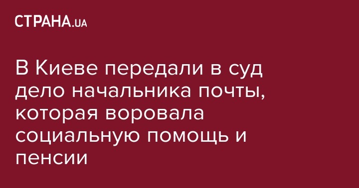 В Киеве передали в суд дело начальника почты, которая воровала социальную помощь и пенсии