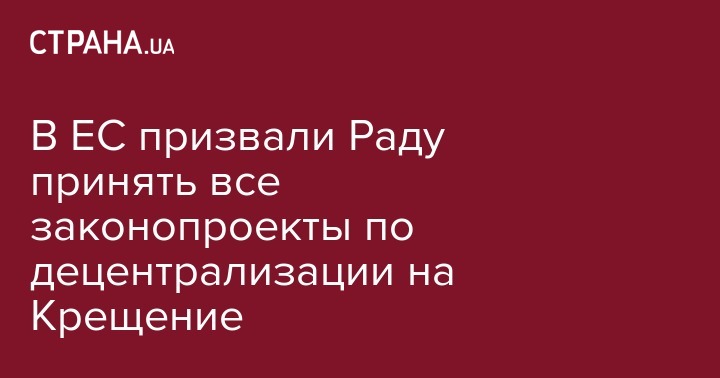 Представительство Европейского союза в Украине призвало Верховную Раду принять на заседании 19 января три законопроекта по децентрализации. Об этом говорится в сообщении пресс-службы представительства на странице в Facebook.