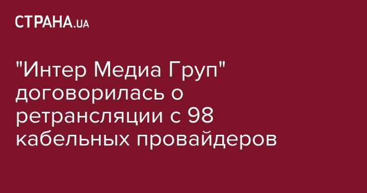 "Интер Медиа Груп" договорилась о ретрансляции всех телеканалов Группы с 98% операторов кабельных сетей. Об этом сообщает пресс-служба телеканала.
