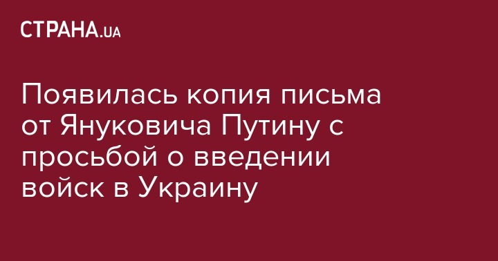 Появилась копия письма бывшего Президента Виктора Януковича к Президенту РФ Владимиру Путину с просьбой ввести войска в Украину, передает Цензор. нет