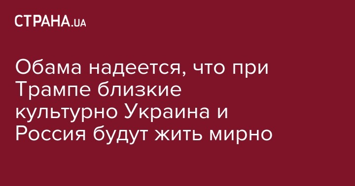 Обама надеется, что при Трампе близкие культурно Украина и Россия будут жить мирно