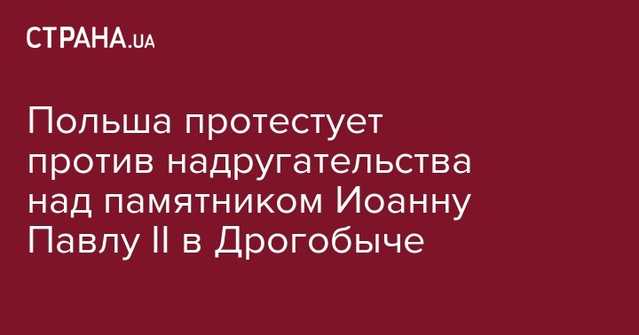 Польша направила в МИД Украины ноту протеста в связи с повреждением монумента Папе Иоанну Павлу II в Дрогобыче Львовской области. Об этом говорится в сообщении посольства на официальной странице в Twitter.