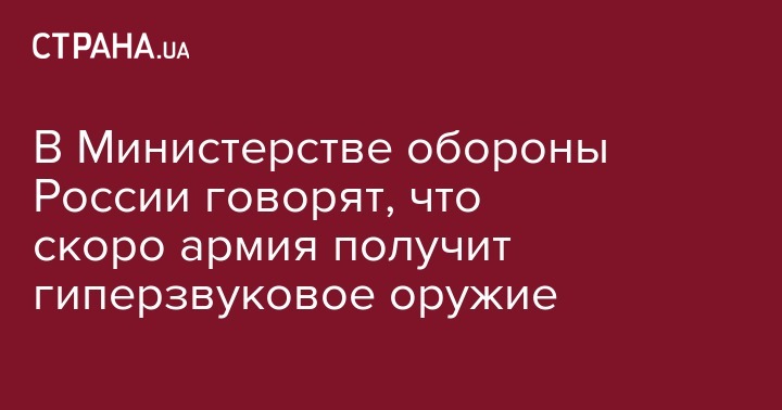 В Министерстве обороны России говорят, что скоро армия получит гиперзвуковое оружие