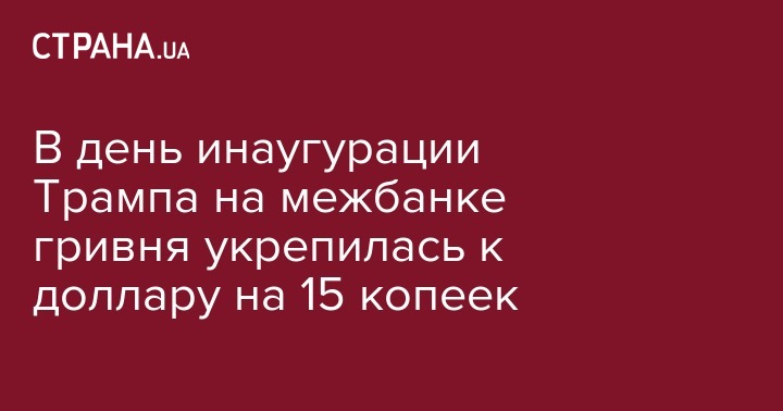 Ранее "Страна" сообщала, что 19 января, в крещенский мороз гривня на межбанке укрепилась на 3 копейки. Также в день инаугураци Трампа доллар дешевеет на фоне мировых валют. "Инвесторы достигли такого уровня, когда они готовы подождать и посмотреть, что сможет предложить администрация Трампа", - прокомментировал ситуацию на рынке главный рыночный аналитик CMC Markets Рик Спунер (Ric Spooner).