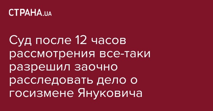 Печерский районный суд Киева, после почти 12-часового рассмотрения дела, удовлетворил ходатайство следователя военной прокуратуры о даче разрешения на проведение процедуры заочного досудебного расследования в деле о государственной измене в отношении экс-президента Виктора Януковича.