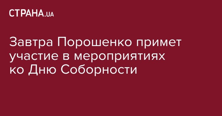 "В воскресенье, 22 января, в 9:30 президент Петр Порошенко примет участие в торжественном мероприятии по случаю Дня Соборности Украины", – говорится в сообщении.