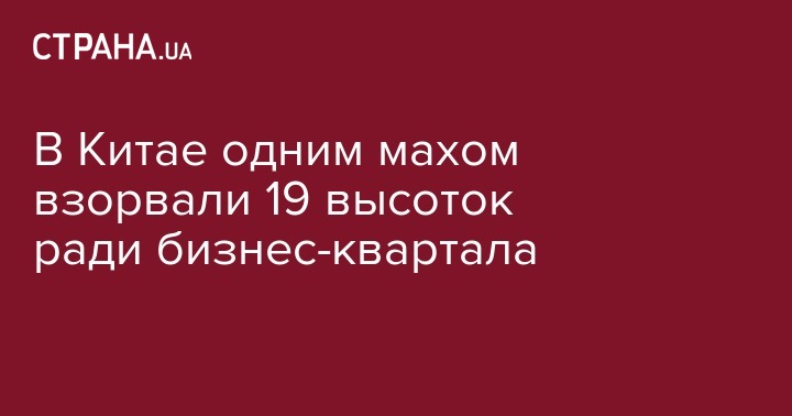 В китайской провинции Хубэй за 10 секунд взорвали 19 многоэтажных домов, чтобы расчистить место под бизнес-квартал из небоскребов. Об этом сообщают РИА Новости.